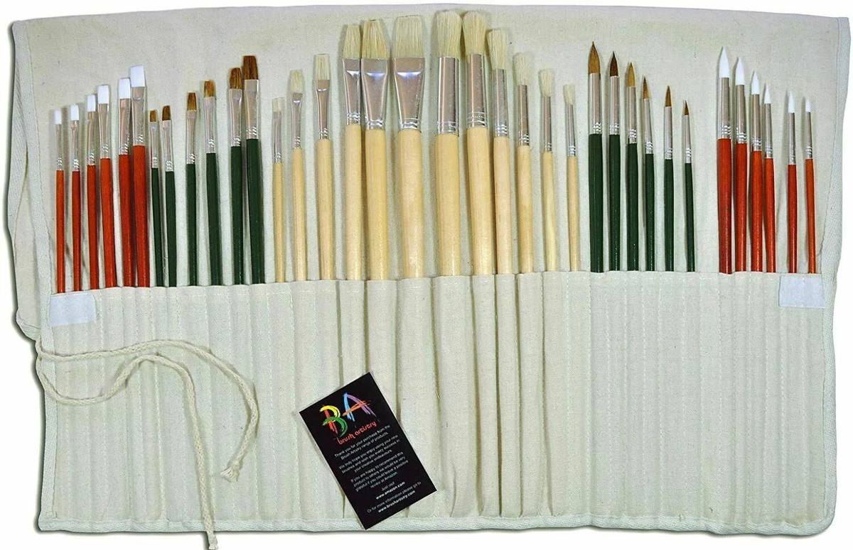37pc Artist Paint Brush Set Flat Round Synthetic Hog Bristle Pony Hair Ebay
