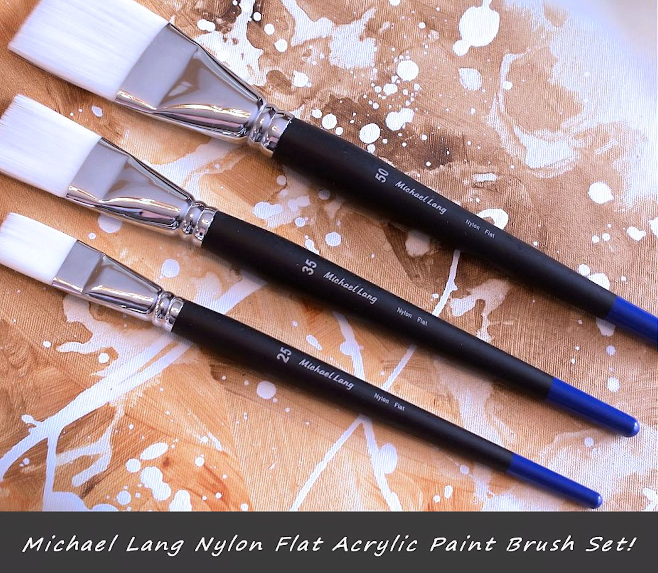Michael Lang Artist Brushes Set Exclusive Design 3 Pack Nylon Flat Mix Lang Painting Etsy Uk